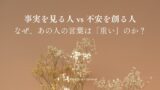 職場のネガティブな言動に疲れていませんか?同じ出来事でも「問題解決」で動く人と「不安を投影」する人では、見えている世界が違います。本記事では、感情に振り回されず自分のエネルギーを守るための「現実処理モード」の秘訣を解説します。